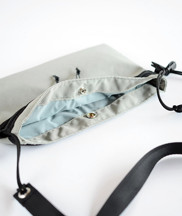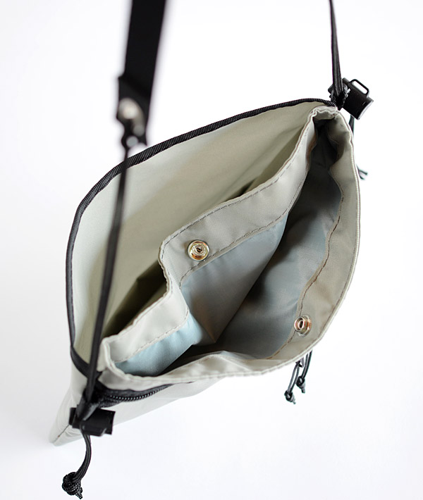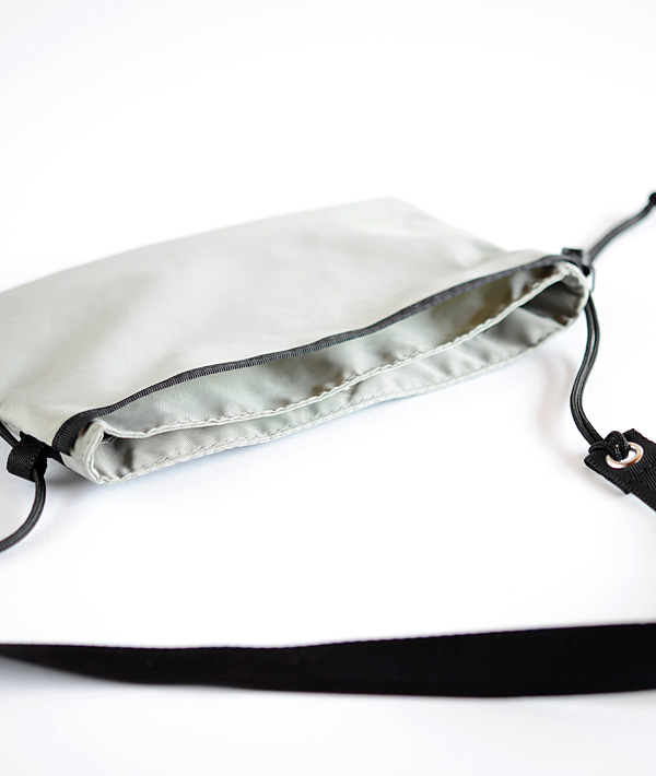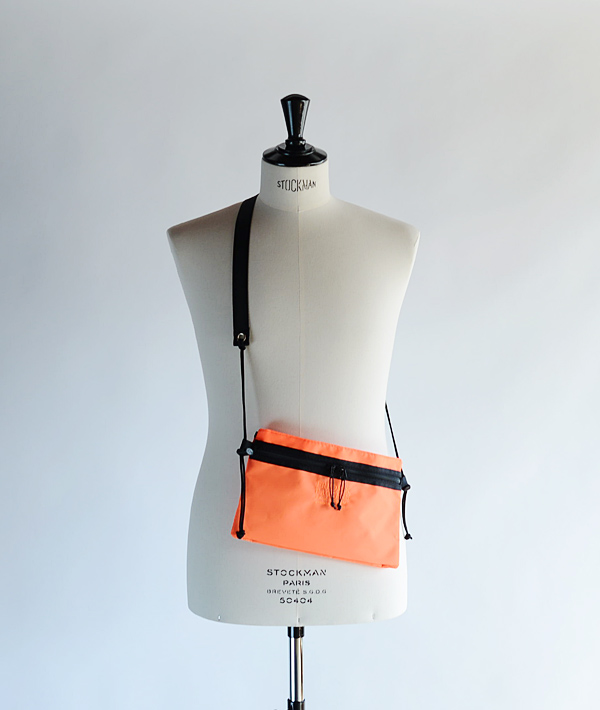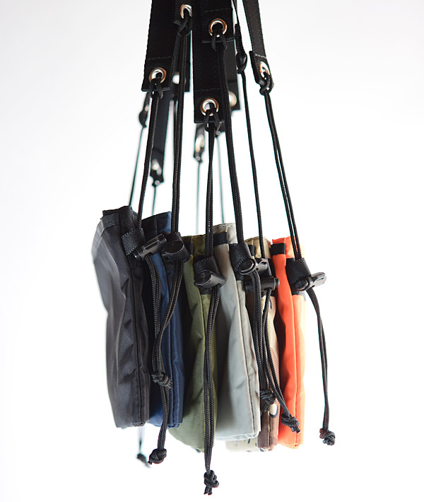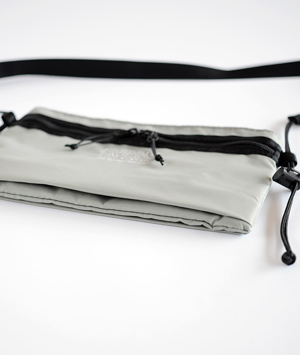 本体に3つの収納スペースを確保し、アイテムにあわせた収納に柔軟に対応する「420Dユーティリティーサック」。ワンアクションで簡単に体へフィットさせる事が可能なスピンドルコードを両サイドに備えています。表地に420デニールの軽量パッククロスナイロンを使用。フロントポケットとセンターポケットの裏地には70デニールのリップストップナイロンを使用しています。フロントポケットとバックポケットはマチ付きで荷物の増量時にもフレキシブルに対応。また、使用頻度の高いものを取り出すのに便利なドットボタン留めのセンターポケットなど機能性に優れています。コードロックの調節で、約74〜128cmの長さ調節が可能なショルダーストラップも魅力です。