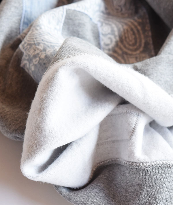 ペイズリー柄の「Hパッチ」をフロントに施したクルーネックスウェット。ゆったりとしたオーバーサイズのシルエットで男女を問わずリラックス感ある装いにお勧めです。