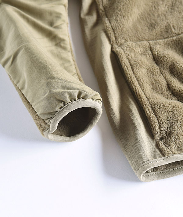 武骨なイメージの強いミリタリーモノですが、保温性に優れた柔らか透湿性素材、ポーラテックフリースを使用しているため、非常に肌触り良い軽い着心地となっています。また、両サイドには伸縮性の高いグリッドフリースが採用され、身動きが容易でストレスなく着用して頂けます