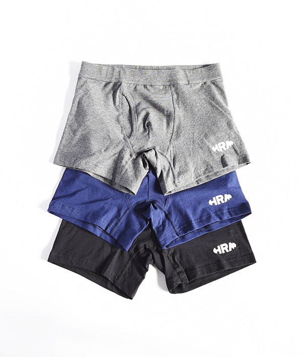 「HRM WONDER」のバックプリントを施したボクサーパンツです。立体的なフロントデザインでフィット感が良く、肌ざわりの良い、柔らかいウエストゴムを使用しており、履き心地も快適です。GREY,NAVY,BLACKの3色展開。専用パッケージ入りでギフトにもおススメです。
