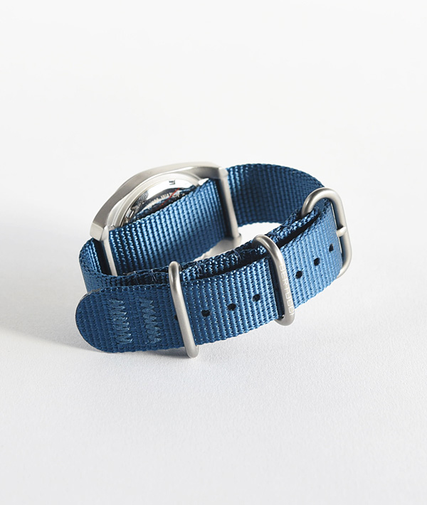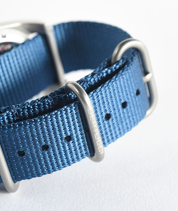 BERTUCCI(ベルトゥッチ)は、2002年にシカゴにて創業。アメリカ特許を取得したDX3ケースとウォッチバンドが特徴なミリタリーウォッチブランドです。創業者のマイケルベルトゥッチはプロダクトデザイナーとして、テクノロジー分野の開発に携わった経験を持ち、優れた耐久性とシンプルで視認性の高いコレクションは、世界中のユーザーから信頼を集めています。こちらは、文字盤にBLUE BLUE別注カラーのネイビーを採用した魅力的な一品です。100mの防水性を持ち、36mmのステンレスケースに、傷のつきにくいミネラルガラスを風防に使用。長時間の使用にも耐えうるフィールドナイロンのベルトを合わせています。