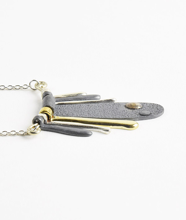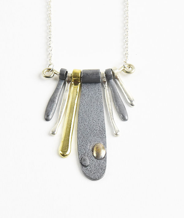 ハリウッドランチマーケットの新作シルバー。シルバーとブラスプレートをランダムに配したネックレストップは、独特の存在感と動きのある表情をお楽しみいただけます。