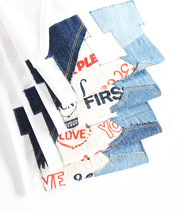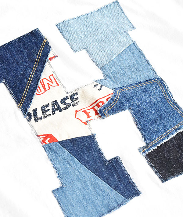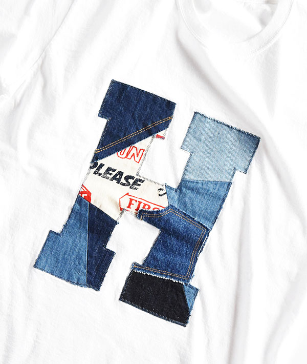 HRリメイクHパッチワークシリーズより、新作Tシャツの入荷です。ブルートーンのライトデニムとオリジナルファブリックのパッチワークがクラフト感ある豊かな表情に仕上がっています。