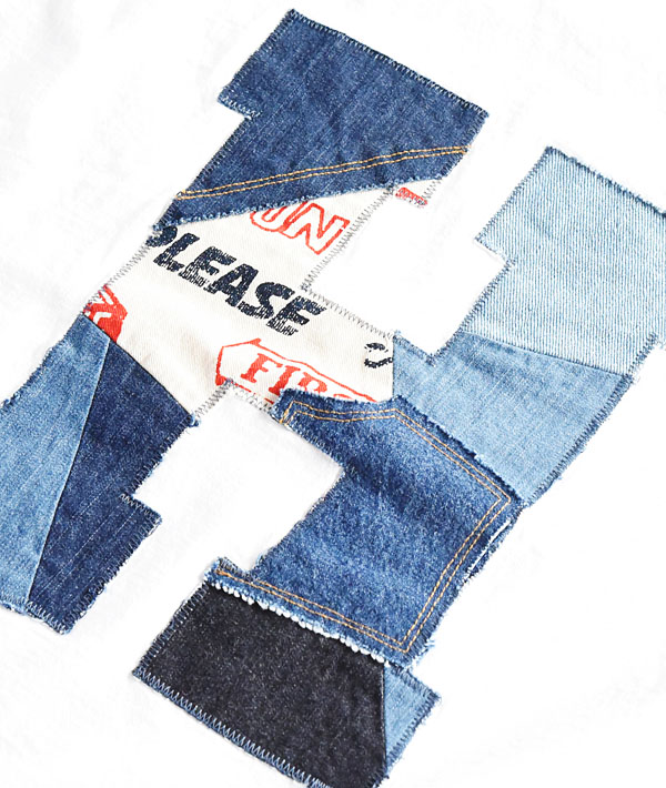 H.R.REMAKE(エイチアールリメイク) HRR カットオフパッチワーク HパッチTシャツ【MENS&WOMENS】