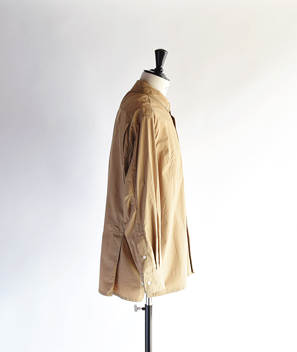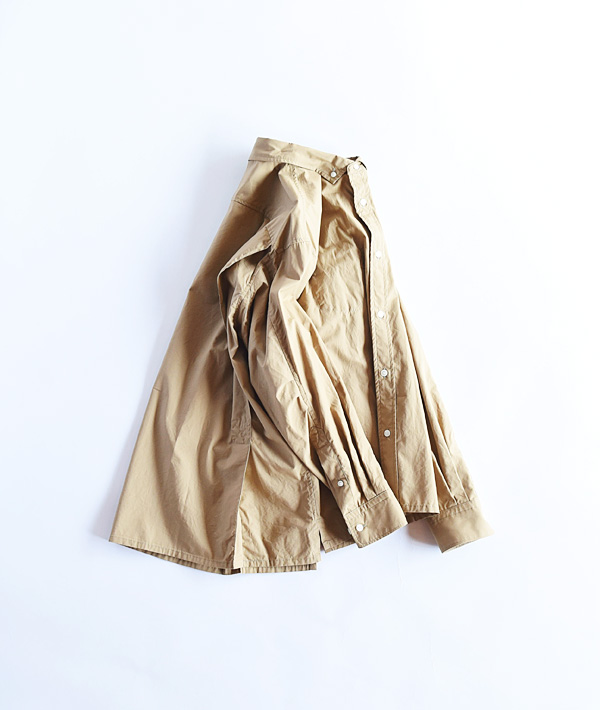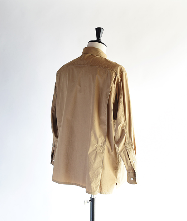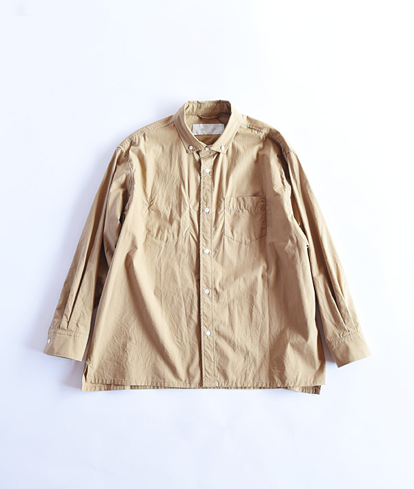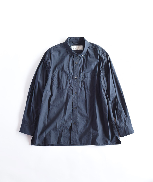 ブリーチェズのバックプリーツオーバーBDシャツ。素材は、オーガニックコットンを用いたタイプライターを使用。光沢感のある素材とゆったりとしたフォルムに、BDの衿型をワイドスプレッドに仕立て上品な佇まいに仕上げています。