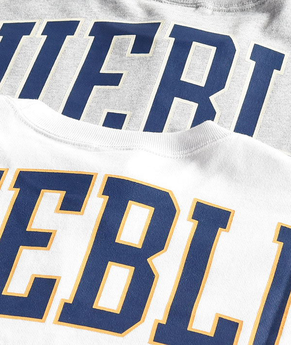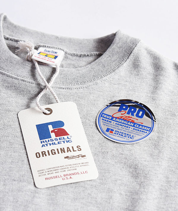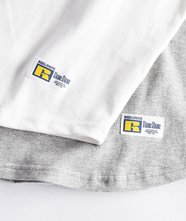 ここ数年、継続して展開されている「RUSSELL ATHLETIC」と「BLUE BLUE」のコラボレーションシリーズ。今シーズンのフットボールTシャツは、プリントカラーを一新したニューバージョン。ボディーには、ヘビーウェイトでありながら、適度な柔軟性とソフトな肌触りが特徴の「ラッセルアスレティック」の定番素材、PRO COTTONヘビー天竺を使用しています。