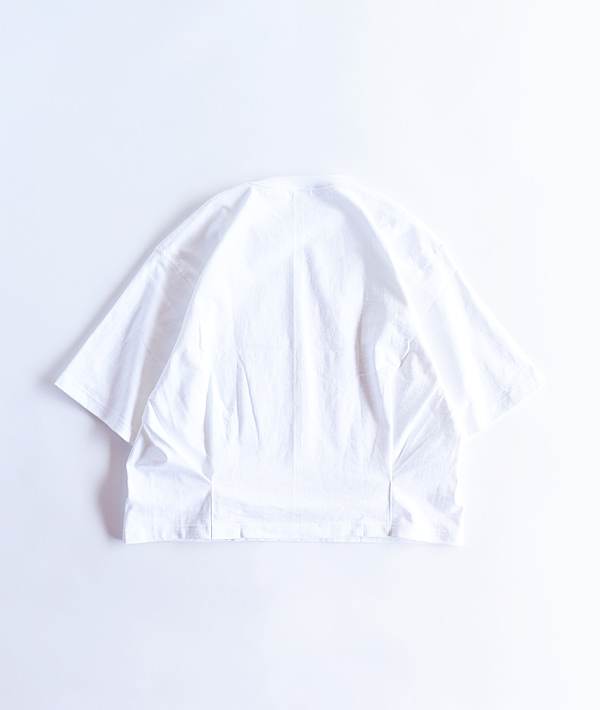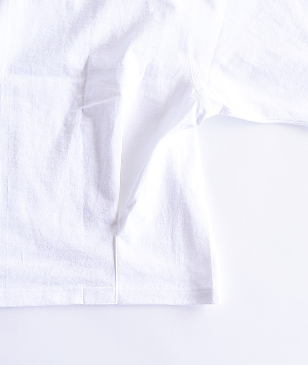 CAMBER BIG Tee XXXLをベースに着丈と袖丈のリサイズに加え、後身頃裾にプリーツを施したカスタムモデルです。ビッグサイズならではのゆったりとしたアームホールと立体感あるボックスシルエットは、一枚での着用はもちろん、秋冬シーズンにかけてのレイヤードスタイルにもお勧めの一着です。(Size: ONE)