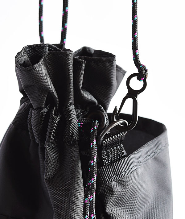 軽快な使用感の210D オックスフォードナイロン生地を使用した、ミニサイズのショルダーバッグです。メイン開口部のコードを絞れば巾着型フォルムが完成します。ショルダーストラップは体型や用途に合わせてスムーズに長さを調節することができます。