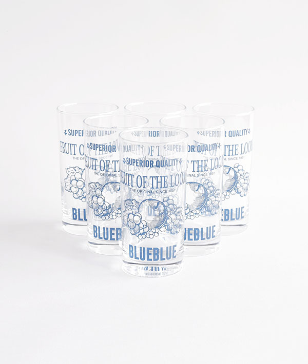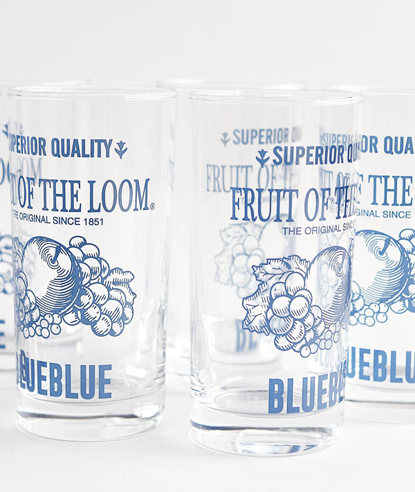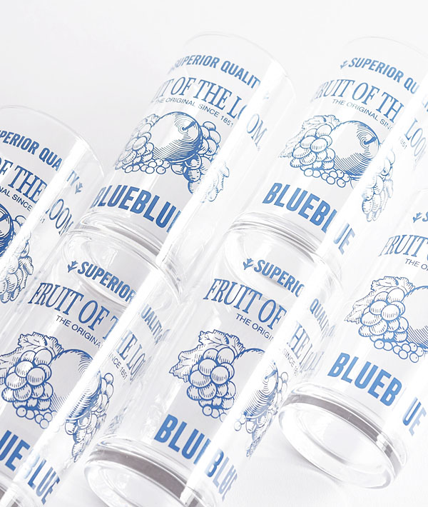「FRUIT OF THE LOOM」と「BLUE BLILE」のコラボレーションによるタンブラーグラスです。