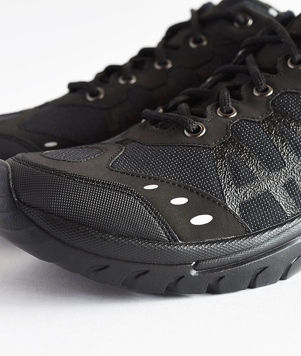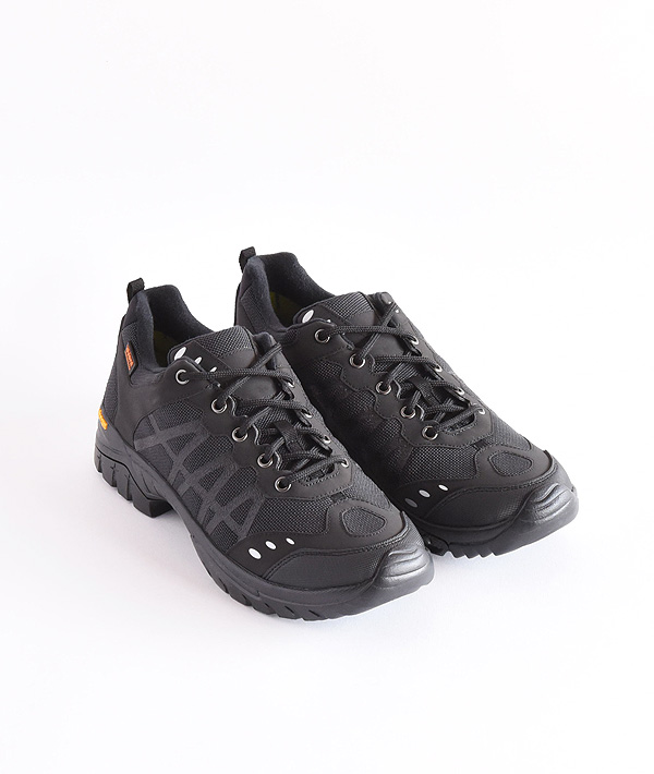 1990年代にかけてロシア軍でトレーニングシューズとして採用されていたスニーカーの通称「ロシアントレーナー」。それをベースに軍用シューズの生産をしていたファクトリーに依頼し、現代的に再現しています。見た目より、ライトウェイトな仕上がりでソールはしっかりとしたグリップを約束します。トレイルランニングを彷彿とさせるデザインは、オフロードにも活躍すること間違いなしです。アッパーには耐磨耗性、 汚れ防止、速乾性、軽量などの多機能素材SuperFabricを使用し、ライニングの透湿防水素材eVentが足の濡れを防ぎます。ソールには、Vibramを搭載。
