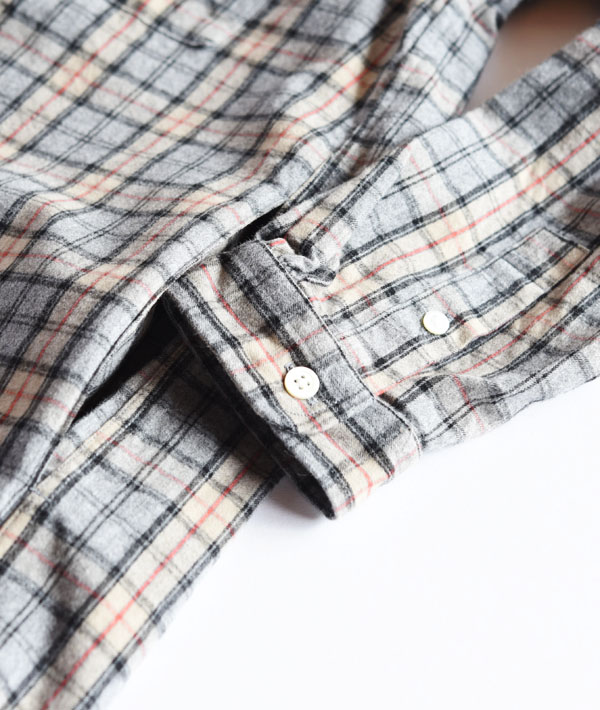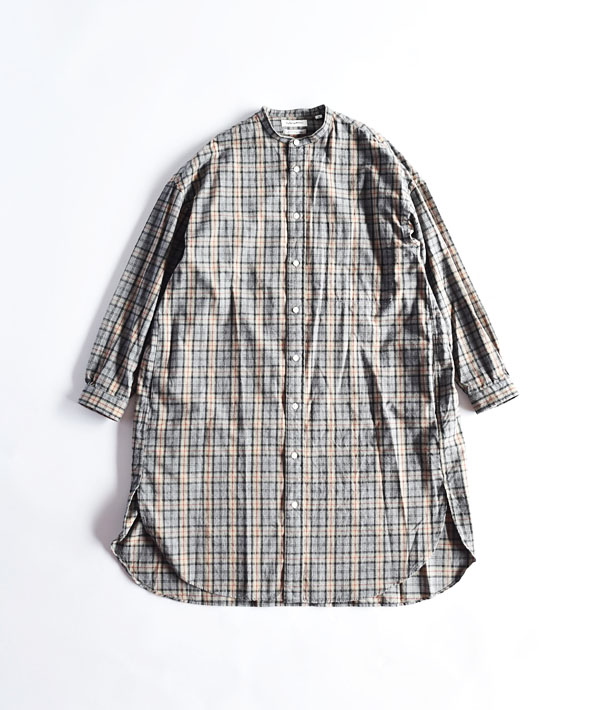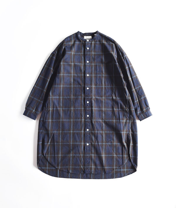 柔らかな肌触りが魅力のコットン100%のフランネルを使用した、ゆったりとしたシルエットのシャツドレスです。ウォーム感がある微起毛の生地は、レイヤードのしやすさを考慮して、やや薄手に仕上げています。両サイドにポケットを備えた機能的なディテールで、フロント釦を開ければライトアウター感覚で羽織としても活用できます。