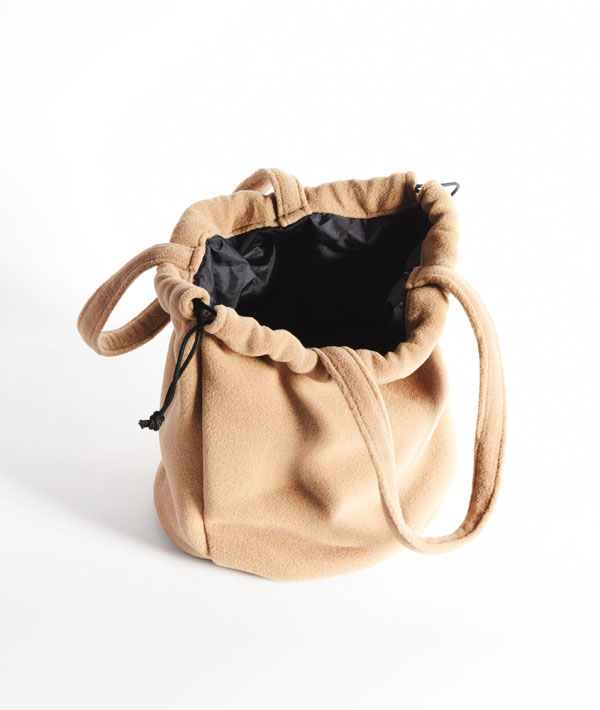 通気性、軽量性に優れた高機能フリース素材「ポーラテック」を使用した「キャンディートート」。ふくらみのある柔らかな手触りとウォーム感が特徴です。巾着仕様で開閉も簡単。荷物がスムーズに出し入れできます。メインボックスには仕分け収納が可能なインナーポケットが施され、財布などの貴重品もすっぽりと収まるサイズ感です。手に馴染みやすいトート型の持ち手により、ちょっとした外出時やお散歩にも最適です。