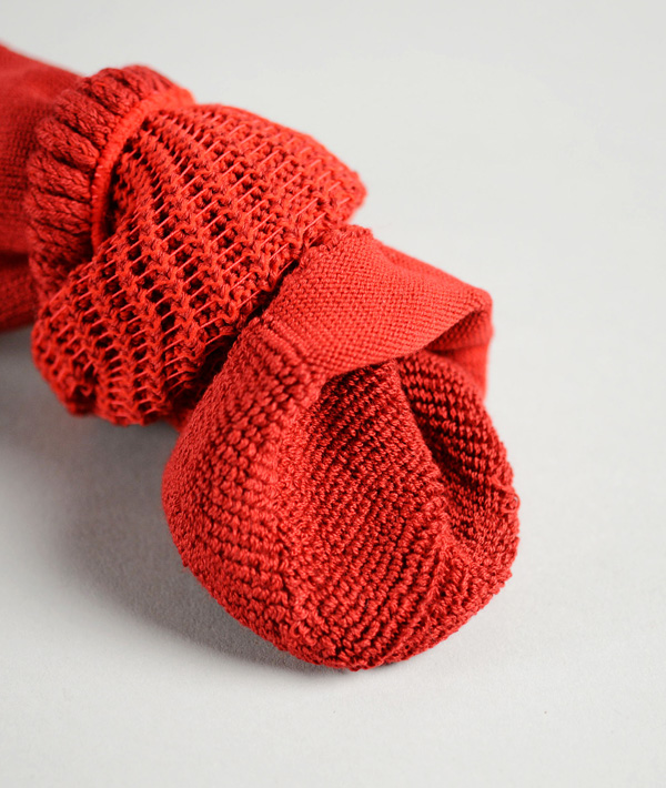 ソックスの原料である糸は季節や用途に合わせ、夏であればリネン、冬であればウールなどシーンに応じ様々な糸を使い分けるのはもちろんのこと「コットンとリネン」や「ウールとナイロン」など異素材を一緒に編み立て組み合わせることで新しい機能性と履き心地を作り上げていくのがRoToTo のソックスです。編み機・糸・人が一つとなってはじめてRoToToのソックスは出来上がります。