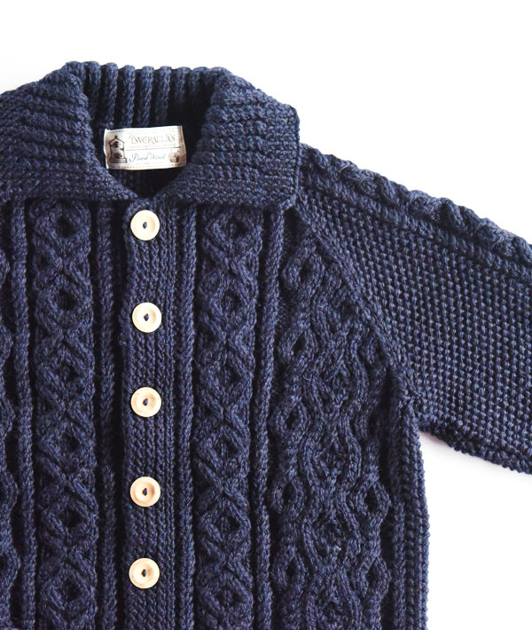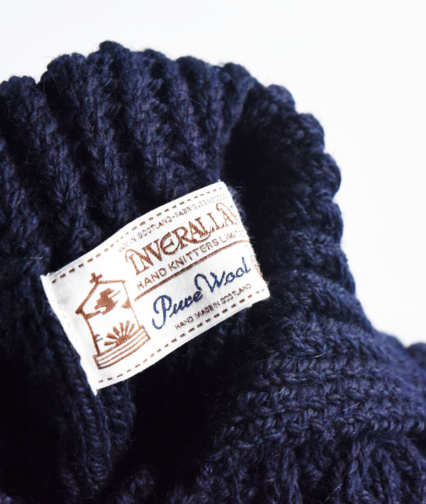 インバーアラン自体は、そもそも、スコットランドのマスプロダクトでは出来ない、アラン諸島に独自に伝わる伝統的なニッティングパターンによるハンドニット製品を、インバーアランブランドの名のもとに集めることにより始まったものです。これらの製品のほとんどすべてが、ハンドメイドやハンド仕上げになっています。