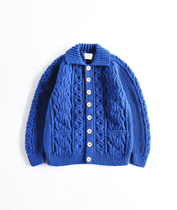 インバーアランの中で最も代表的なケーブル編みで作られた「3Aランバーカーディガン」。フロントにウッドボタンと左右にフロントポケットを備え、アウターとして使い勝手のよいニットカーディガンです。英国内で紡績された最上級グレードのアラン糸をハンドニット用に太く撚り、しっかり目を詰めて編み上げられています。ハンドニットならではの、熟練ニッターによる立体感と重厚感のあるケーブル編みを最大に楽しめます。