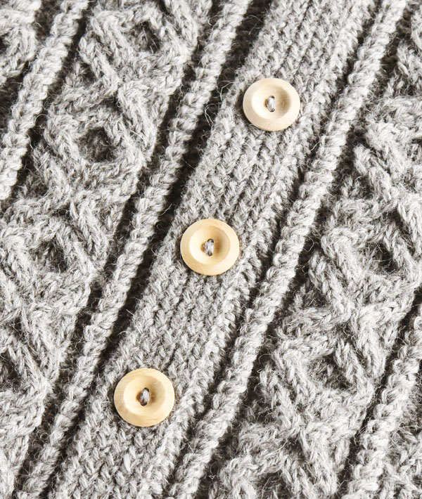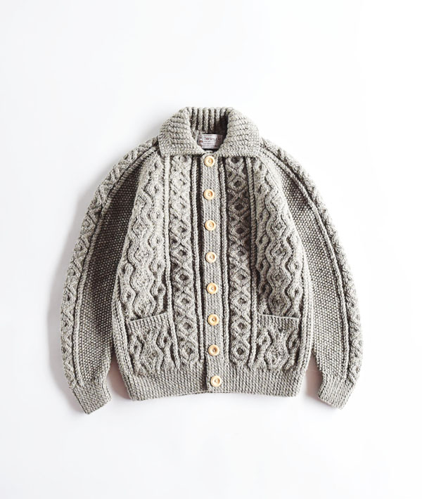 インバーアランの中で最も代表的なケーブル編みで作られた「3Aランバーカーディガン」。フロントにウッドボタンと左右にフロントポケットを備え、アウターとして使い勝手のよいニットカーディガンです。英国内で紡績された最上級グレードのアラン糸をハンドニット用に太く撚り、しっかり目を詰めて編み上げられています。ハンドニットならではの、熟練ニッターによる立体感と重厚感のあるケーブル編みを最大に楽しめます。