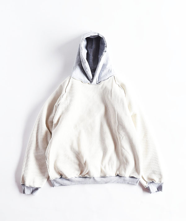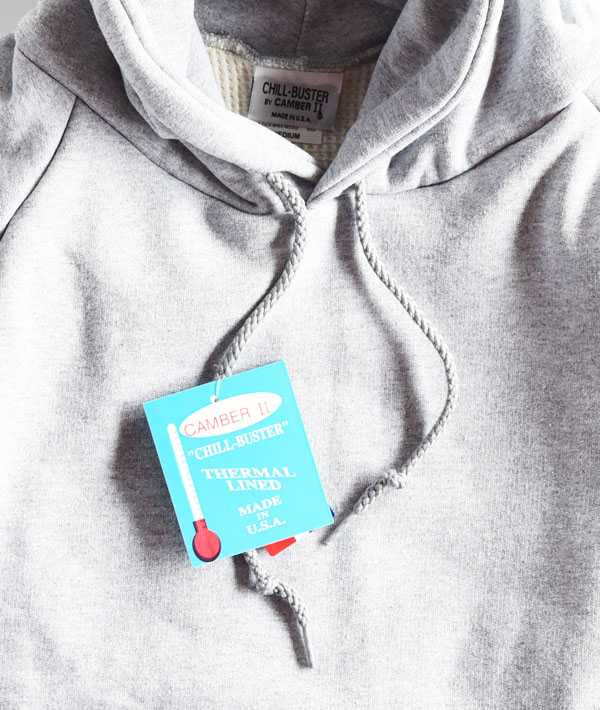 アメリカ製の重厚な作りを象徴するヘビーデューティーな製品が魅力のキャンバーより、「チルバスター プルーオーバーパーカ」が入荷しています。 7.5ozのスウェット地に6.5ozのサーマルを貼り合わせた合計14オンスのヘビーウェイト素材。保温性抜群のスウェットパーカです。ボリュームあるシルエットも魅力ですが、肉厚ながら綿ポリ素材特有の非常に軽いソフトな着心地も特徴です。また、ラグランスリーブにカンガルーポケットというオーセンティックなディティールに、フードは2枚仕立てのキレイな立ち上がりのボリューム感です。