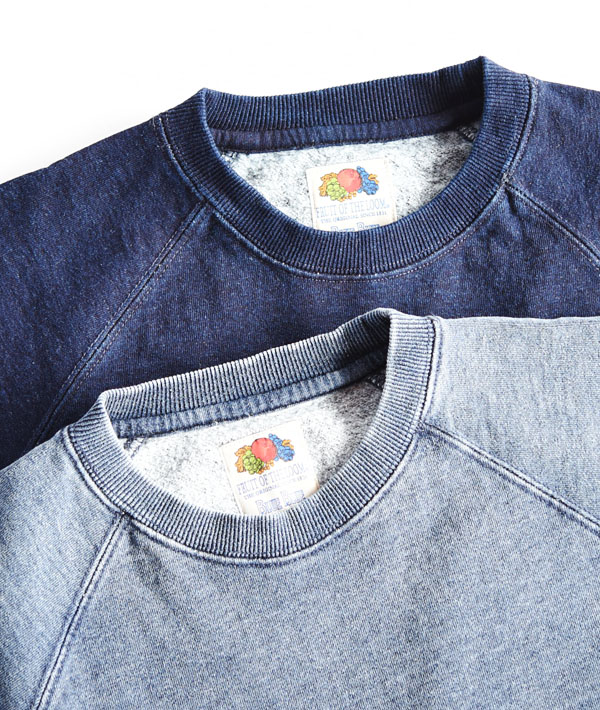 FRUIT OF THE LOOM×BLUE BLUE(フルーツオブザルーム×ブルーブルー) INDIGO SWEAT RAGLAN CREW NECK【MENS】