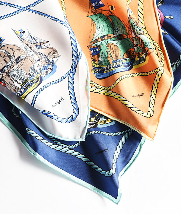 manipuri×ORCIVAL SHIP SILK SCARF 65×65