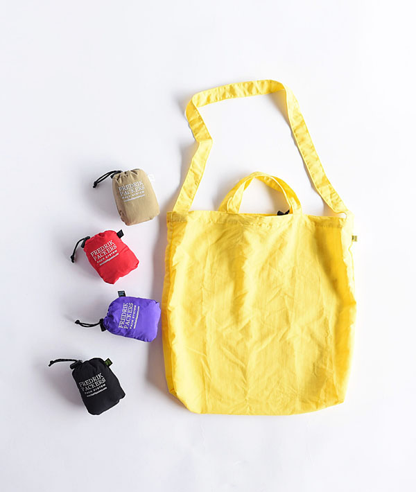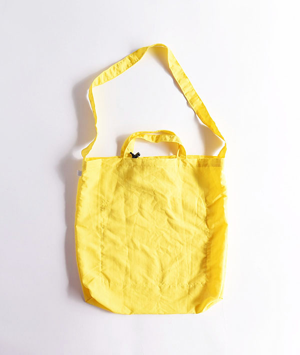 軽量且つ、耐久性と速乾性に優れたTASLAN NYLONをボディに使用。トートとショルダーの2way仕様で、内側のポケットに小さく畳めば、パッカブルとして持ち運びが可能。ショルダーは好みの長さに結ぶことで調節とアクセントにもなります。軽くて柔らかな質感ですが、見た目以上の耐久性と速乾性を持っていますので、エコバッグとしても普段使いとしてもあらゆるシーンで活躍します。