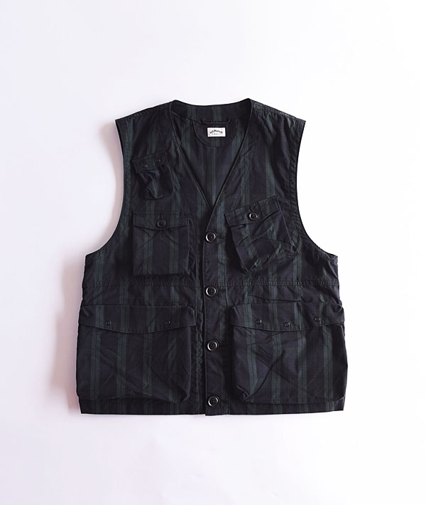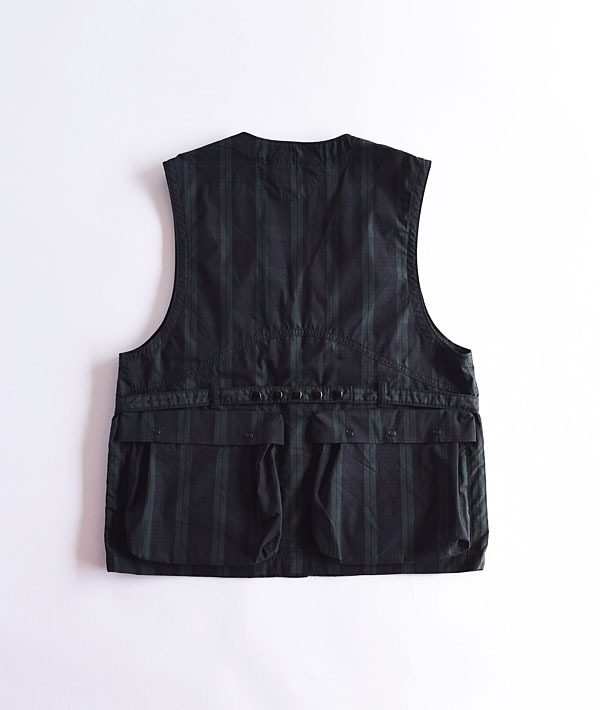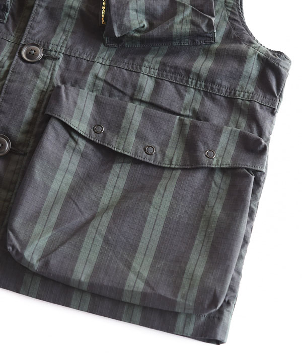 格子状に繊維が織り込まれ引裂き強度に優れたリップストップ生地を使用したタクティカルベスト。軽量感ある薄手の素材にストレッチ性を持たせており、機動性も備えたストレスの無い軽快な着心地です。フロントのフラップとマチのついた立体的なポケットなどミリタリーならではのディティールも魅力。カラーは、シンプルなブラックとグリーン(ブラックウォッチ柄)の2色展開です。