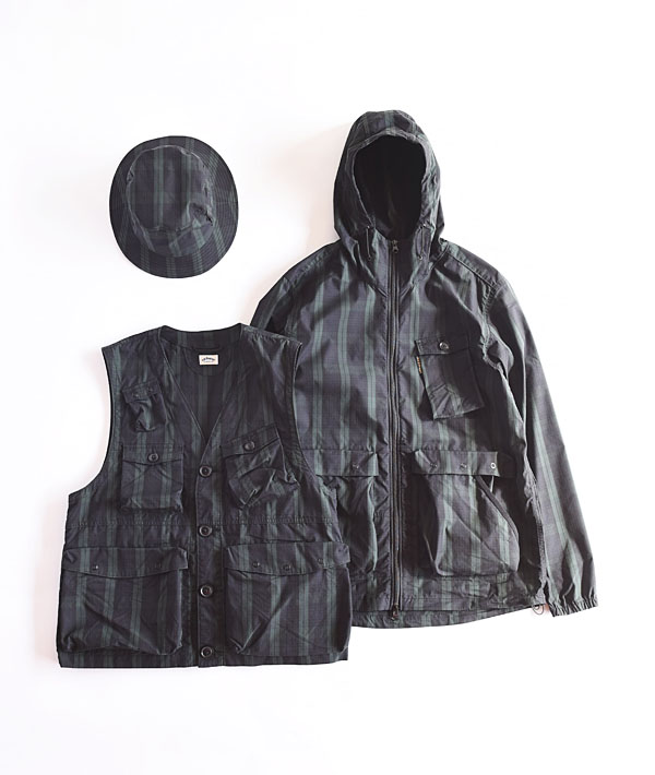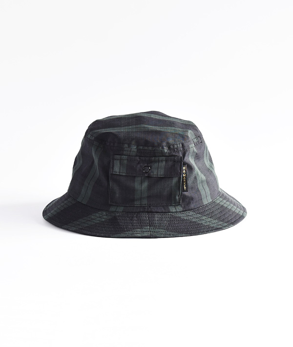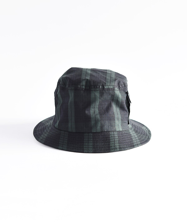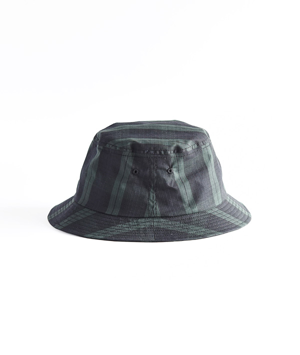 格子状に繊維が織り込まれ引裂き強度に優れたリップストップ生地を使用したバケットハット。軽量感ある薄手の素材にストレッチ性を持たせており、ストレスの無い軽快な被り心地です。アジャスタブル機能により、自在なサイズ調整が可能です。