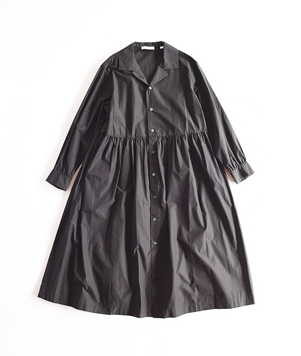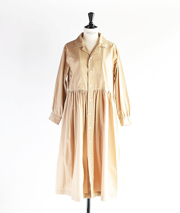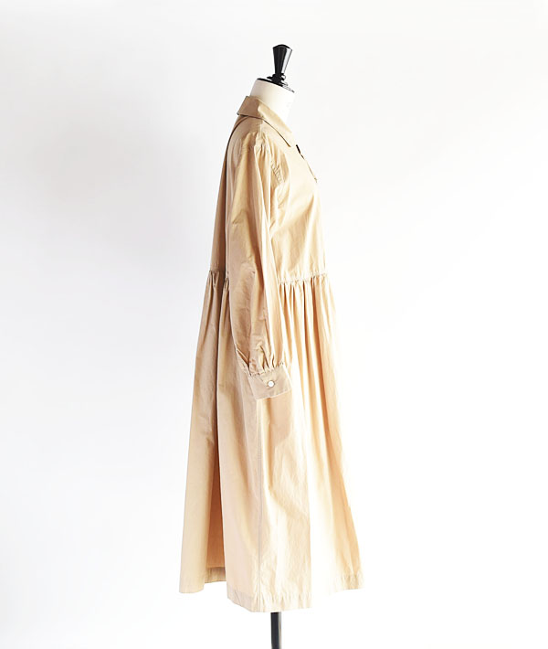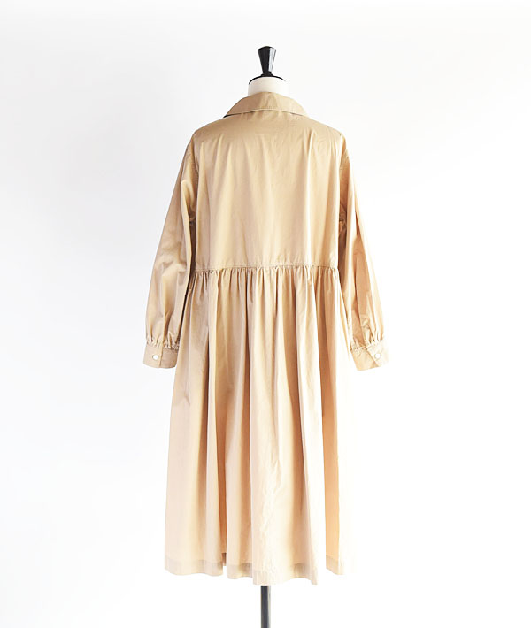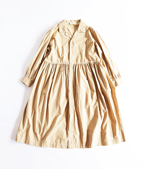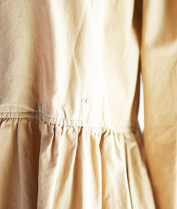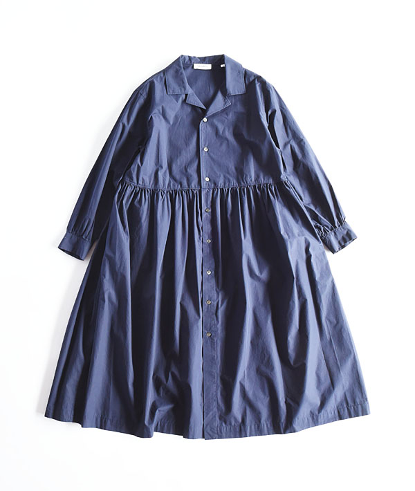 胸元のギャザー切り替えから裾に向かってふんわりと広がったシルエットが特徴のシャツワンピースです。フロントをあけてライトアウターとしても着られて、一枚でコーディネートの幅が広がります。両サイドにシームポケットを配した機能的なディテールも特徴。素材には、ほのかな光沢とハリがあるコットンポプリンを使用。清涼感のあるさらりとしたタッチで快適な着心地を実現。「レスターシティ」を意味する「LC」の刺繍もさりげないポイントです。