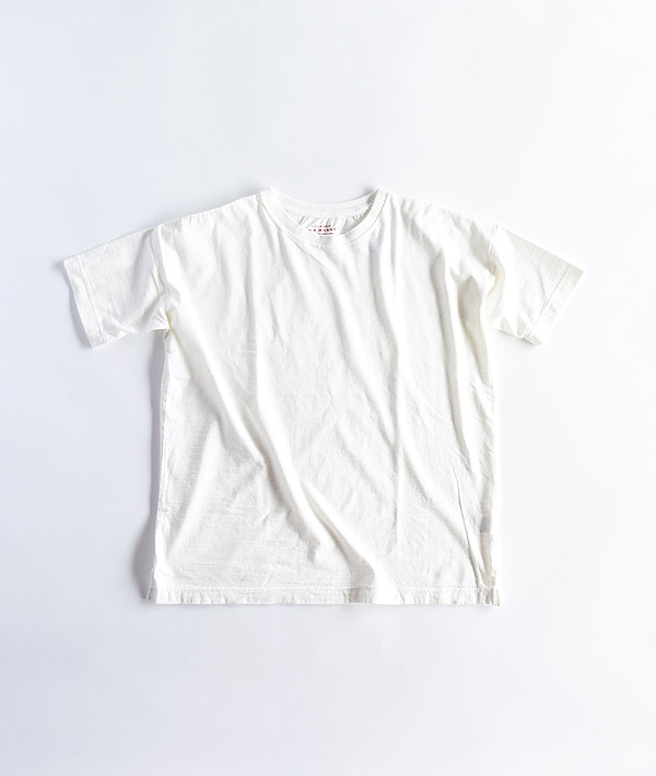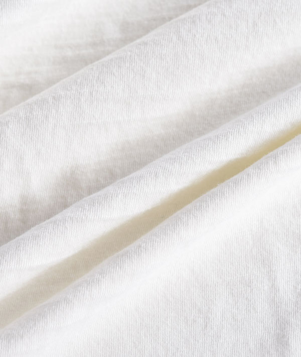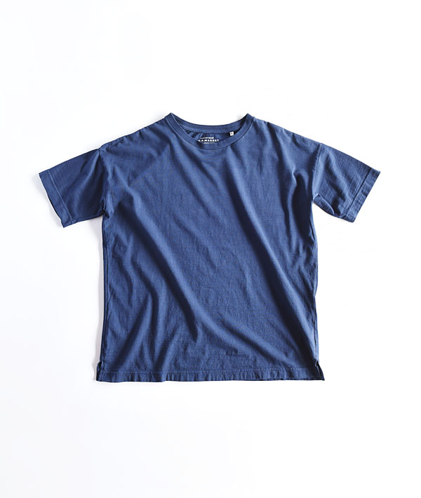 ハリウッドランチマーケットのオリジナル素材「GSY」を使用したリラックス感あるビッグTシャツです。スラブ糸特有の凸凹がある素朴な表情と肌触りが良く通気性に優れた天竺素材が特徴。ワイドシルエットですが、アームホールをややスッキリとして今までにないバランスに仕上げています。