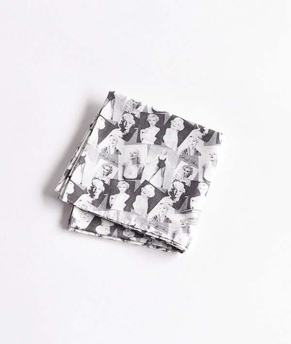フォトグラファー「Milton H. Greene」による7枚の作品をコラージュした、ハンドプリント マリリン・モンローバンダナです。