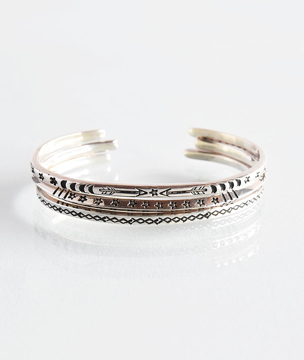 若きナバホ族の女性アーティストが手掛ける「ERICKA NICOLAS BEGAY」。これまでになかった新しいデザインのインディアンジュエリーです。女性らしさを最大限に活かした独創的なデザイン。1800年代に使用されていたスタンプと現代のスタンプを加えて組み合わされた、彼女ならではの独自のスタンプワークに仕上げています。また、素材にも強いこだわりを持つ彼女は、シルバーを溶かしシルバープレートを一から作るところから始まる全工程を、自らの手で行っています。昔ながらの特徴と現代的なデザインが融合した、新しくて魅力的なインディアンジュエリーです。