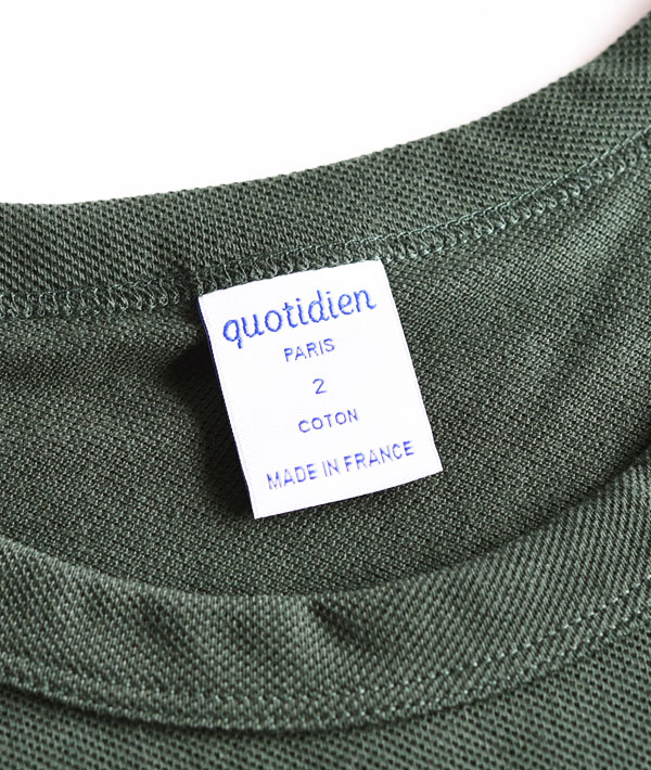 フランス語で「日常の」という意味を持つカットソーメーカー「quotidien」。本国フランスではCHANTECLAIR(シャントクレール)の名前で広く知られています。1973年、フランス・シャンパーニュ地方にて創業。コットンの産地としても知られる同地方の上質なコットン素材と高い縫製技術を背景にハイクオリティーな製品を展開するファクトリーブランドです。優れた素材、着心地、パターン等全てにおいて完成度が高く、100%フランス製の数少ないフランスブランドです。