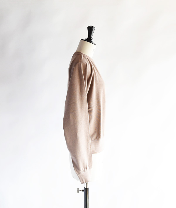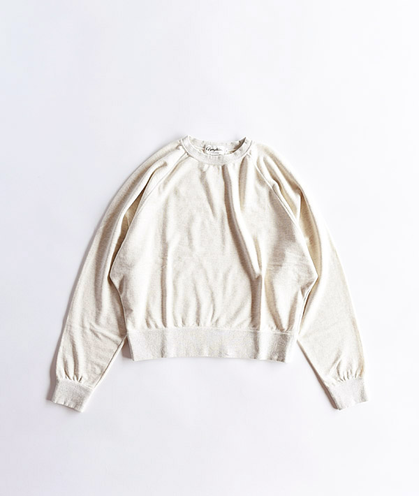 軽量で肌触りの良いライトオンスのフレンチテリー素材を使用したクルーネックスウェット。伸縮性に優れたパイル生地「MINI FRENCH TERRY」は薄すぎず厚すぎない程よい素材感。ややショートレングスに仕上げた着丈がボリュームのあるボトムスやハイウエストデザインとも好相性なアイテムです。