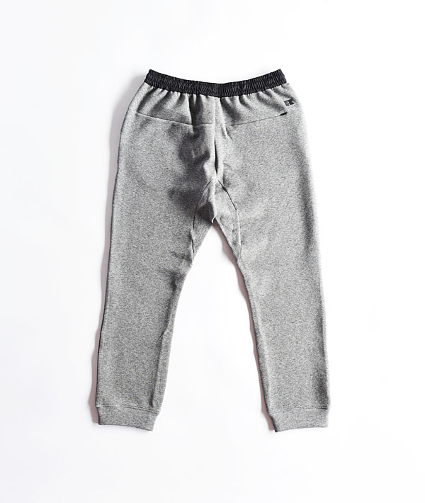 ダブルニット(ダンボールニット)素材を使用したスウェットパンツです。ダンボールニットは構造が段ボールに似た組織で、表面糸と裏面糸を中糸でつなげて作られた生地。天竺素材に比べハリとコシがあり、厳密にはスウェットと異なり裏側が起毛せずにスベスベとした肌触りの良さ。薄手でも保温性と柔軟性に優れた生地はロングシーズン活躍してくれます。