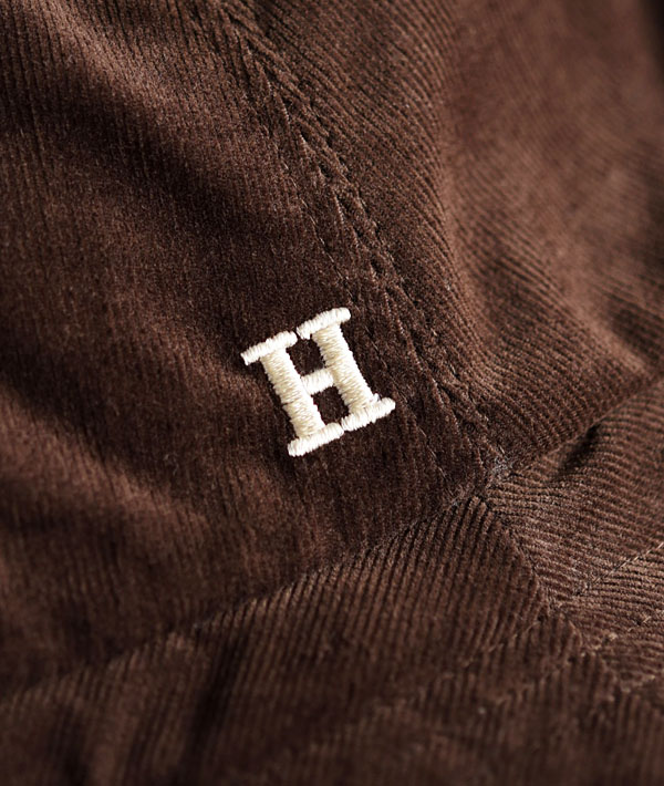 コーデュロイ面とボア面をリバーシブルで使用可能なバケットハット。その日の気分で両面お楽しみいただけます。コーデュロイ側には「H.R.REMAKE」定番のH刺繡をワンポイントで施しています。
